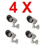 Now you can deter robbery, theft, and vandalism without the high cost of a real security camera. When placed in your home or business, even the most sophisticated criminals will think the premise is guarded by a high-tech surveillance system and go in search of an easier target. In fact, this is an actual surveillance camera that has been modified into a "dummy" or fake security camera. This unit does contain a flashing light. The camera features authentic video cable and a fully adjustable mounting bracket that will let you install the camera quickly and easily using the included stainless steel screws. Dimensions of the camera are 5 one half inches x 3 inches x 2 and one half inches (without rain shield). With the rain shield the dimensions increase to 7 x 3 x 3 inches. The camera requires 2 AA batteries that are not included.