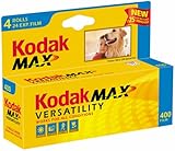 Kodak Gold Max 400 film offers maximum versatility for all cameras, including compact cameras. Get great results in a wide range of light conditions, indoors or out. This film works well for fast sports and even still-life photography while providing great flesh tones. Rich color saturation, greater flash range, depth, and shadow are all possible in sunlight or low light. The pack includes four rolls, each with 24 exposures.